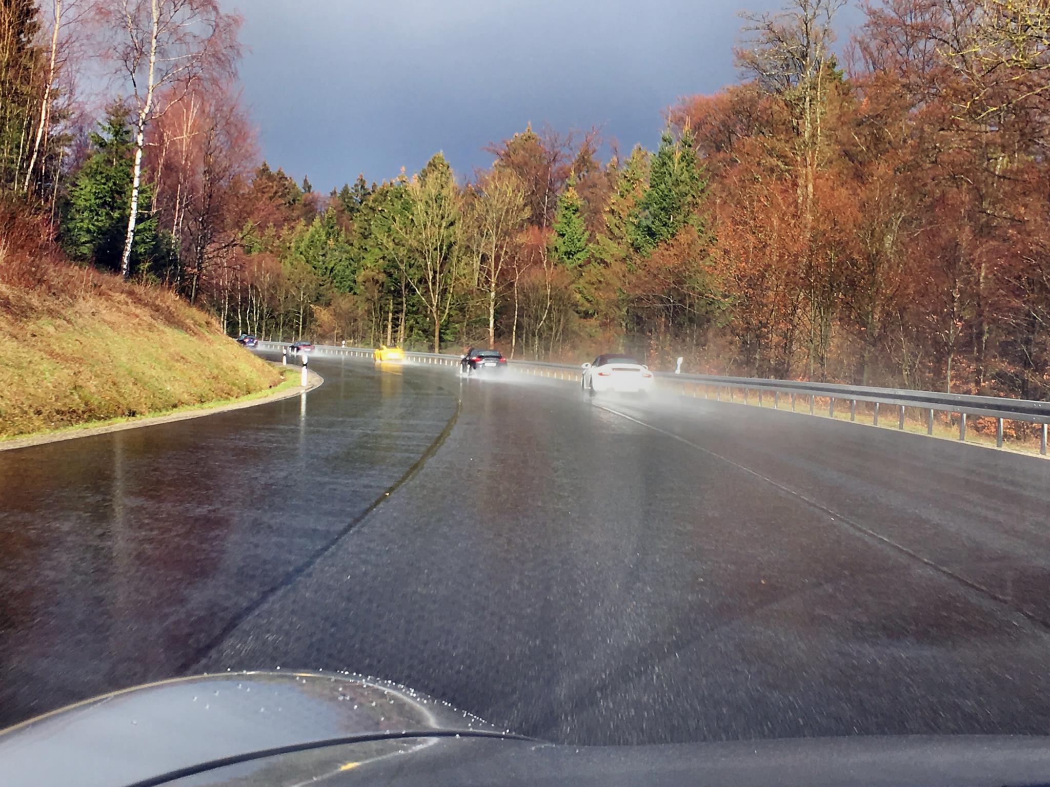 Mit dabei waren Marc und Eva im gelben 991 Carrrea S, Torsten und Susanne im schwarzen 991 Carrera 4, Thomas und Tanja im silbernen 996 Carrera 2 Cabrio, Marcus und Marion im schwarzen Panamera GTS, Stefan und Patricia im weißen 997 Carrera 2 Cabrio und Berni (meinereiner :) ) mit Petra im grauen 997 Carrera 4S Cabrio.